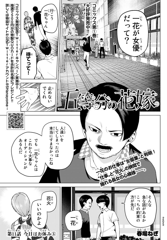 The movie title for the audition is "Class 3-A's Kobayashi-sensei"[page 15] - Fuutarou plans something with the Nakano Quintuplets.[page 21]